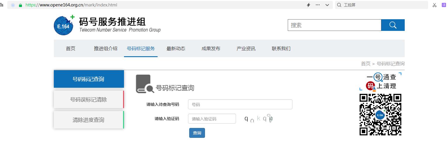 碼號服務推進組平臺網址鏈接:https://www.opene164.org.cn/mark/index.html